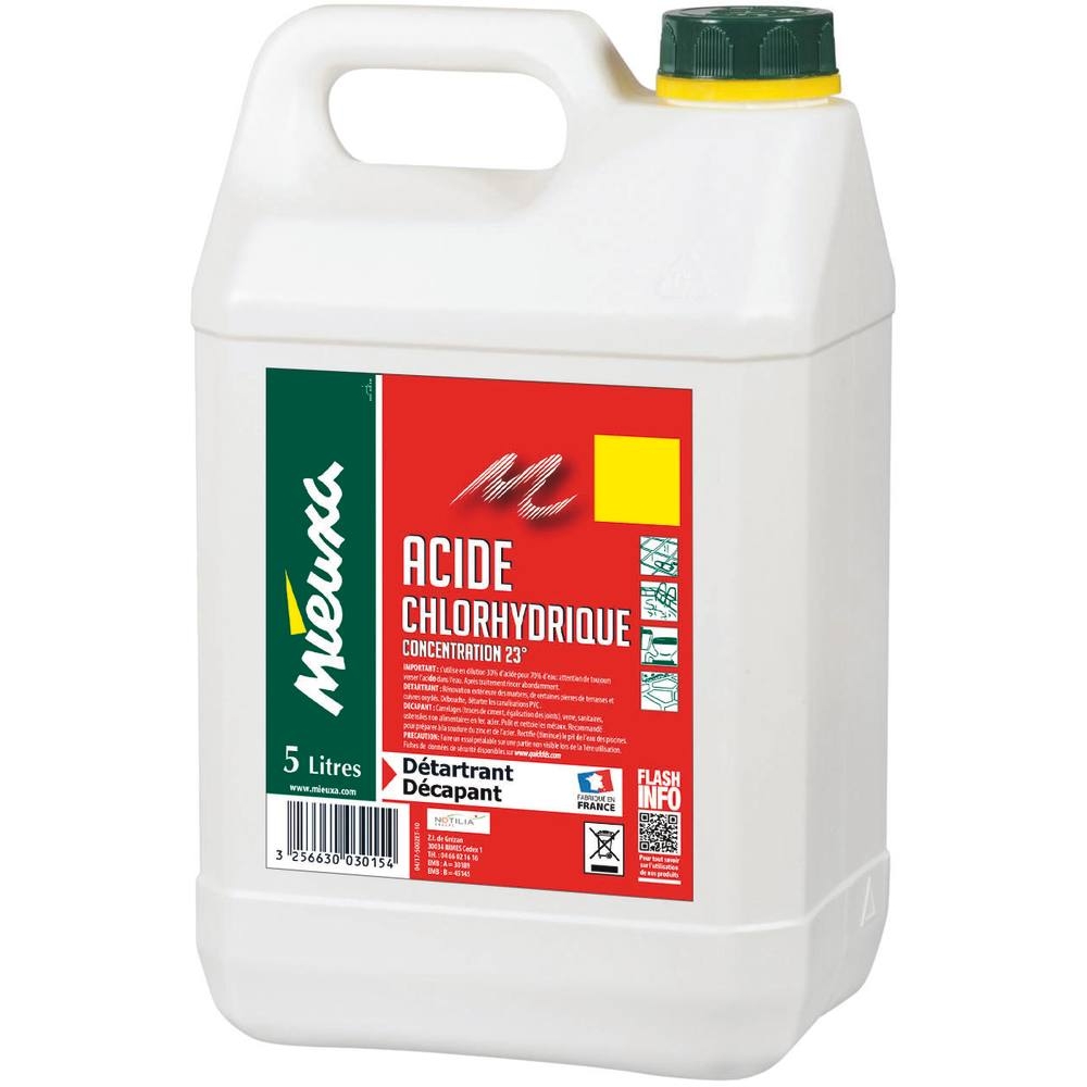 Découvrez Acide chlorhydrique 23% - bidon de 5L MIEUXA - 58257 disponible à l'achat