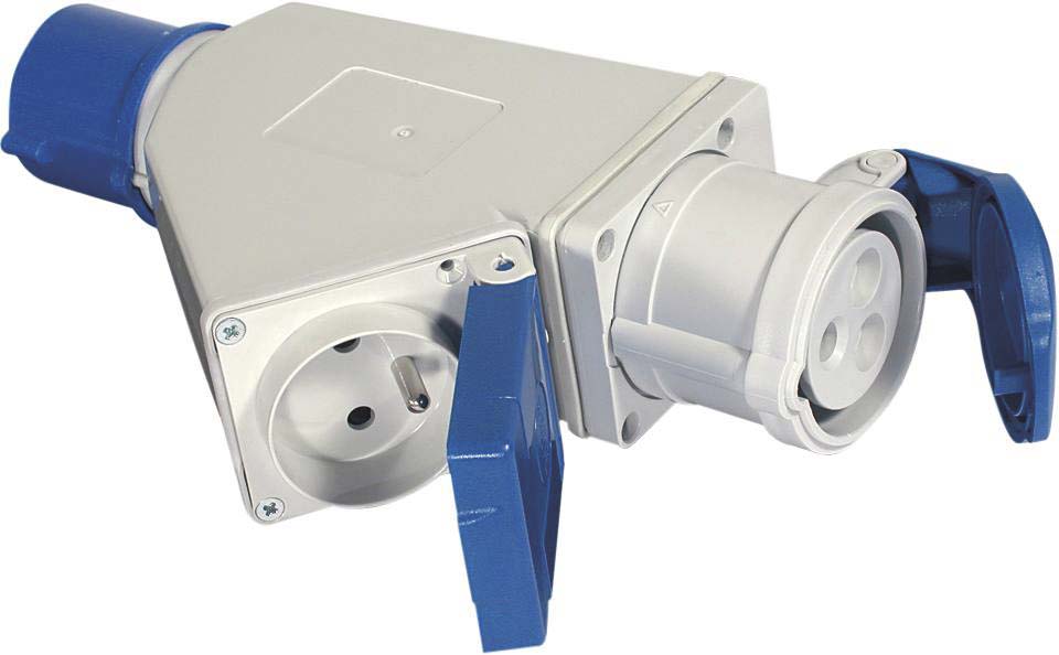 Découvrez Adaptateur fiche mâle CE17 avec 2 prises femelles à clapet 2P+T 230V et CE17 230V - 3268 disponible à l'achat