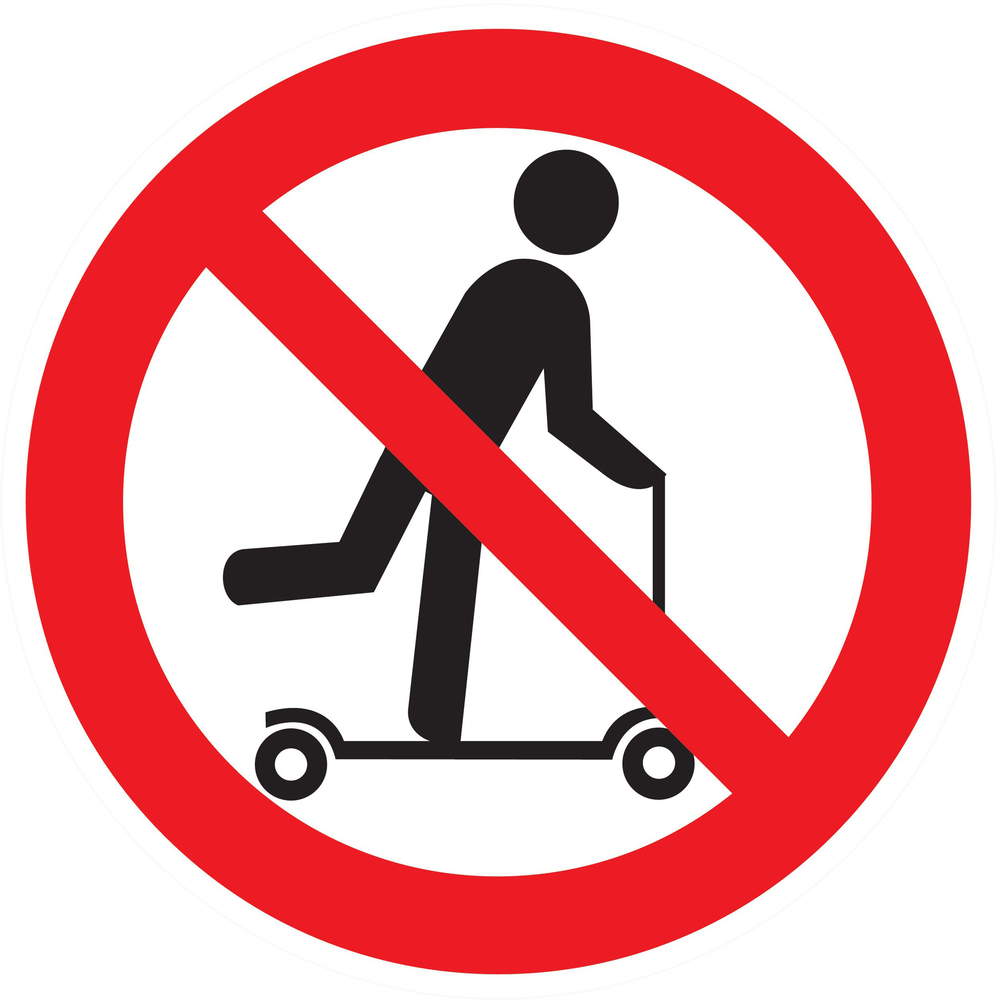 Ce panneau adhésif permet une signalisation claire et durable pour interdire l’usage des trottinettes dans les zones concernées.