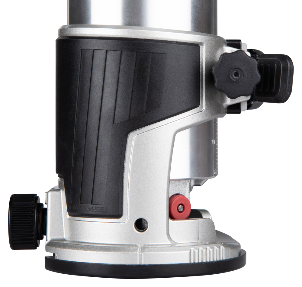 Cet outil dispose de quatre bases interchangeables permettant différents types de finitions : affleurage droit, incliné, en coin, et défonçage. Le variateur de vitesse et le régulateur à molette assurent un contrôle précis adapté à chaque matériau. Le démarrage progressif garantit un usage sûr et précis dès le début du travail. Un collecteur de poussière intégré maintient l'espace de travail propre, tandis que la lampe LED éclaire parfaitement la zone de fraisage.