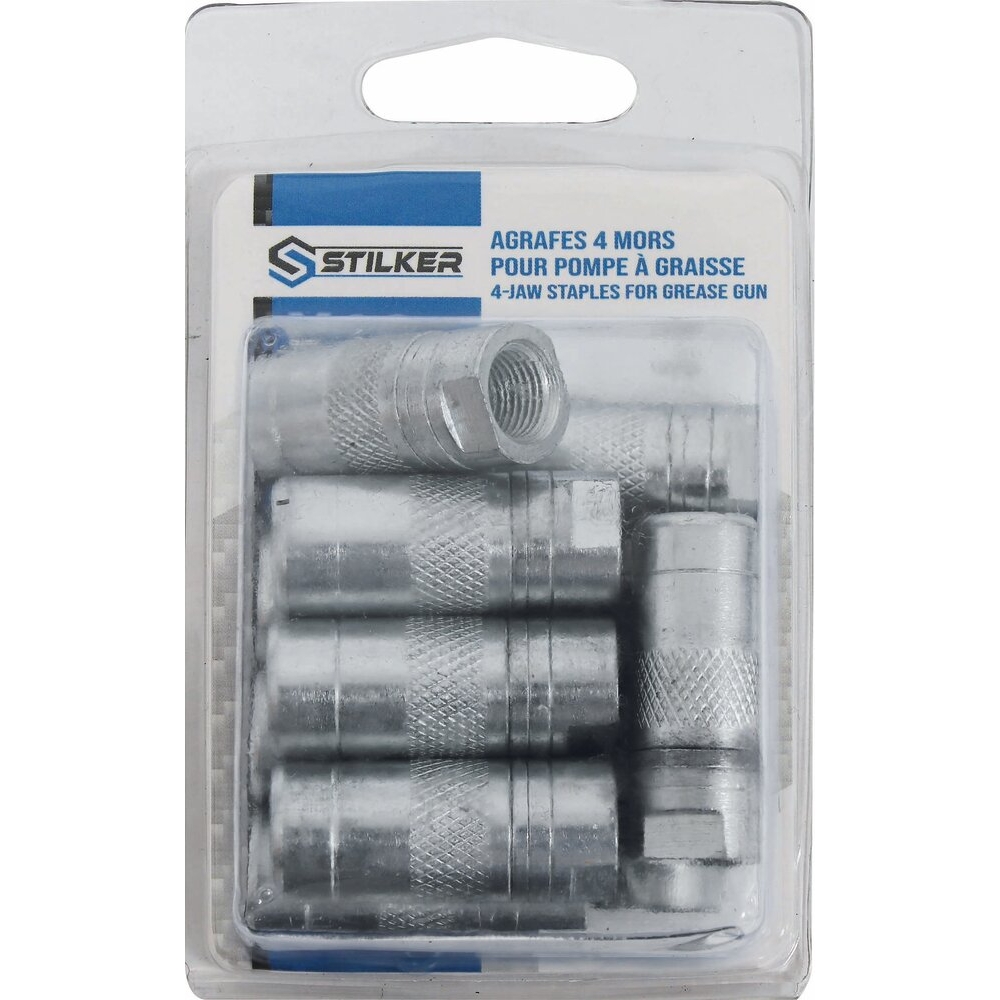 Le design à quatre mors offre une prise solide, limitant les risques de desserrage ou de glissement lors des opérations de maintenance avec des pompes à graisse.