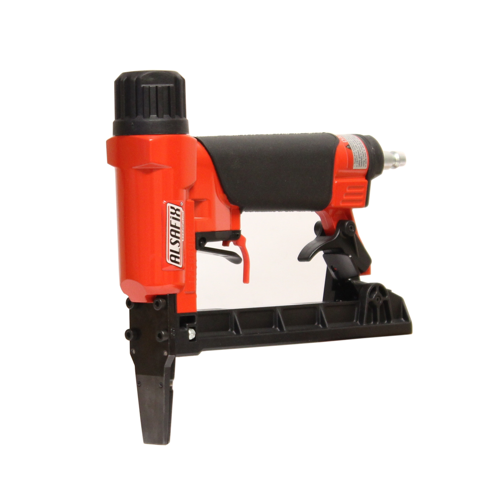 L’agrafeuse est alimentée par air comprimé et équipée d’un mécanisme pneumatique fiable assurant une insertion rapide et précise des agrafes. Le réglage de la pression d’air doit être adapté à l’épaisseur du matériau à agrafer pour un usage optimal.