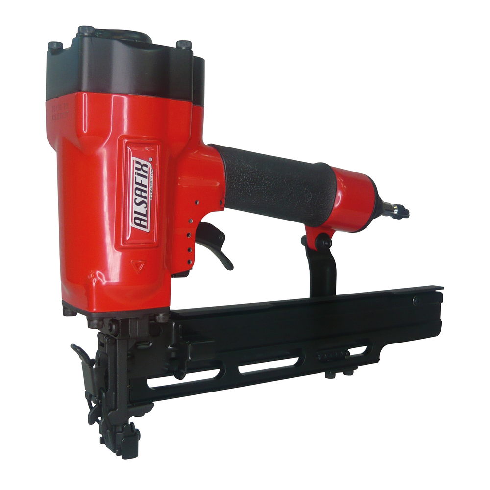 Cette agrafeuse est conçue pour utiliser des agrafes de type L et Z de 25 à 50 mm. Elle fonctionne sous une pression d'utilisation de 5 à 8 bars, garantissant une performance optimale. Pour une utilisation simplifiée, elle est dotée d'un ébrayage rapide au niveau du nez, ne nécessitant aucun outil. Ce modèle compact et léger pèse seulement 1,94 kg, ce qui le rend idéal pour des sessions prolongées.