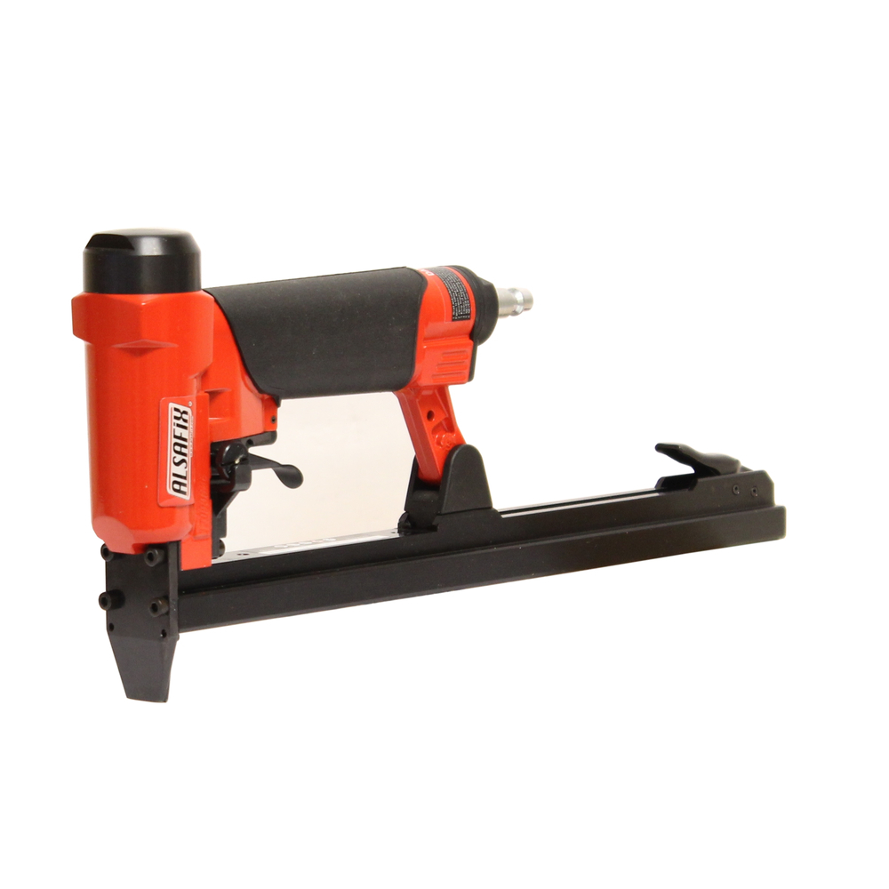Cette agrafeuse fonctionne à l'air comprimé et est équipée d'un chargeur long, permettant une capacité de chargement élevée pour un usage prolongé. Elle est idéale pour les travaux d'agrafage variés, offrant rapidité et précision. Il est recommandé de choisir des agrafes de type A, variant de 4 à 16 mm, en fonction des besoins spécifiques de votre projet.