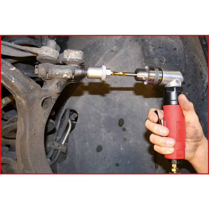 Cet outil est spécialement conçu pour percer les vis de blocage M10 sans endommager l'axe ni refouler le filetage. Grâce à son gabarit de perçage, il assure un centrage exact, rendant son utilisation simple et efficace, notamment pour les véhicules Volkswagen et Audi.