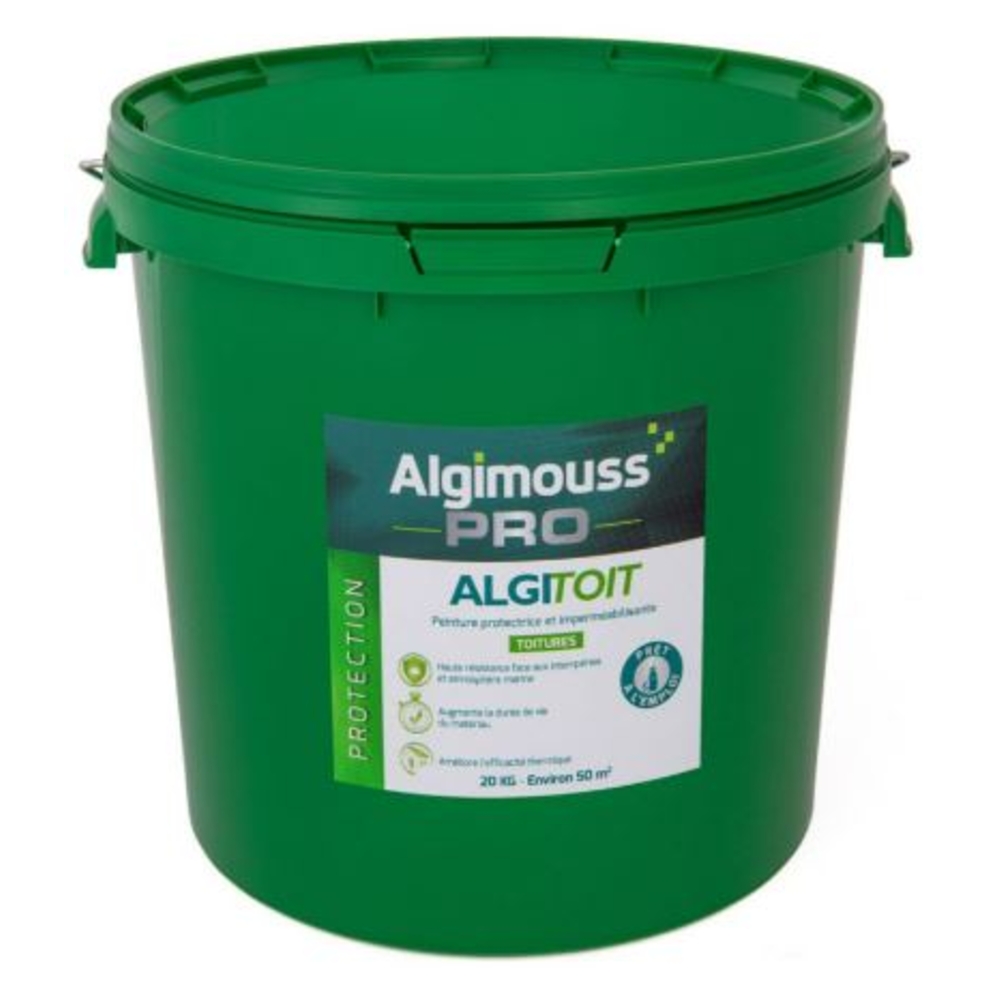 Découvrez ALGITOIT Noir ardoise 20 KG - Peinture pour toiture Noir ardoise ALGIMOUSS - 028022 disponible à l'achat