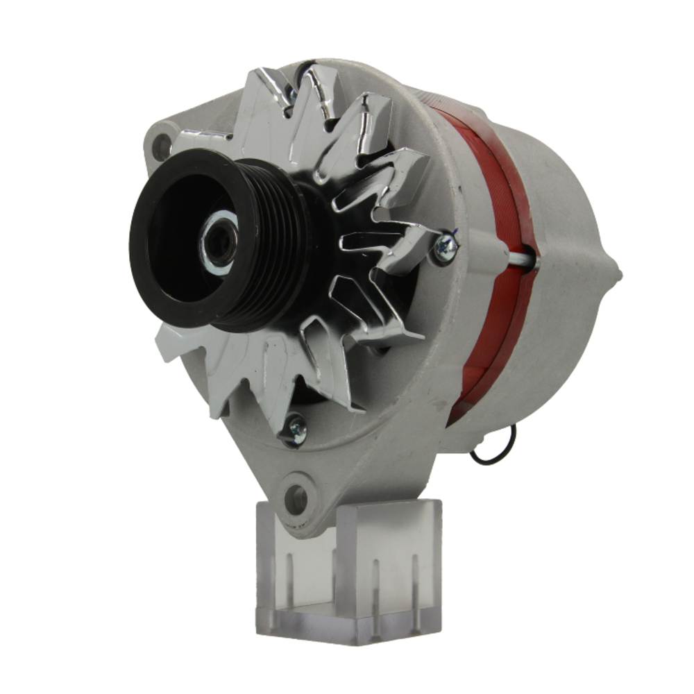 Cet alternateur est doté d'une poulie d'un diamètre de 63 mm, avec six gorges, garantissant une transmission efficace de l'énergie. La fixation de l'alternateur est réalisée par deux trous, avec une connexion B+ de type M8. Son positionnement est prévu à un angle de -60 degrés, ce qui est crucial pour une installation adéquate.