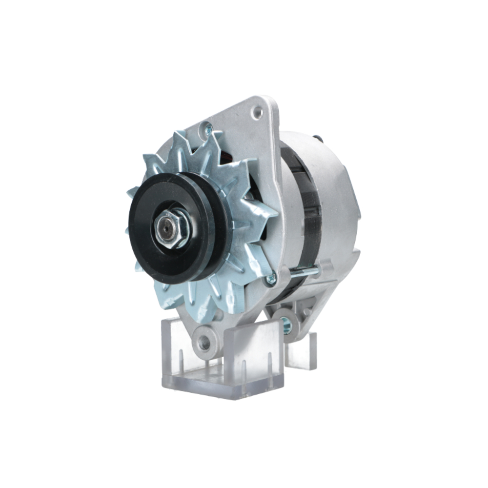 L'alternateur Tatra 35A, référencé sous le numéro PSH 286.005.035.200, est une pièce destinée à fournir une tension de 24 volts et une intensité de 35 ampères. Il est équipé d'une poulie de 76,0 mm, qui comporte deux gorges. Ce modèle ne dispose pas d'une poulie débrayable et est conçu avec un système de fixation comportant trois trous, le B+ étant de type M6.