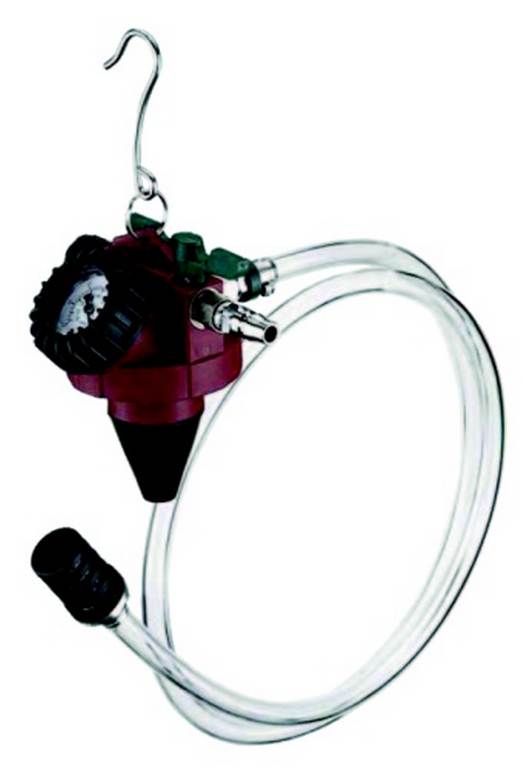 L'échange du liquide et de la purge du circuit sont essentiels pour assurer les conditions thermiques du fonctionnement du moteur. Il est indispensable de maintenir le circuit en état et de vérifier le liquide. Cet appareil permet, après la purge du liquide, de créer le vide d'air dans le circuit. Cette dépression permettra ensuite de remplir automatiquement, rapidement, au maximum et sans bulle d'air le circuit de refroidissement. Manomètre de dépression intégré.