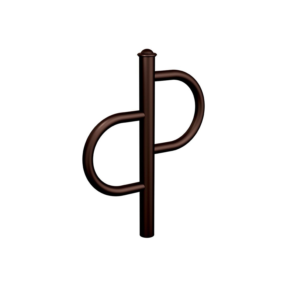Ce modèle présente une hauteur hors sol de 930 mm (hors pommeau) et une largeur de 710 mm. Sa finition est réalisée par peinture sur galvanisation, disponible dans plusieurs coloris, dont le RAL 8017. L’appui vélos propose quatre types de pommeaux au choix : City, Agora, Boule ou Inox brossé, permettant une personnalisation selon les besoins.