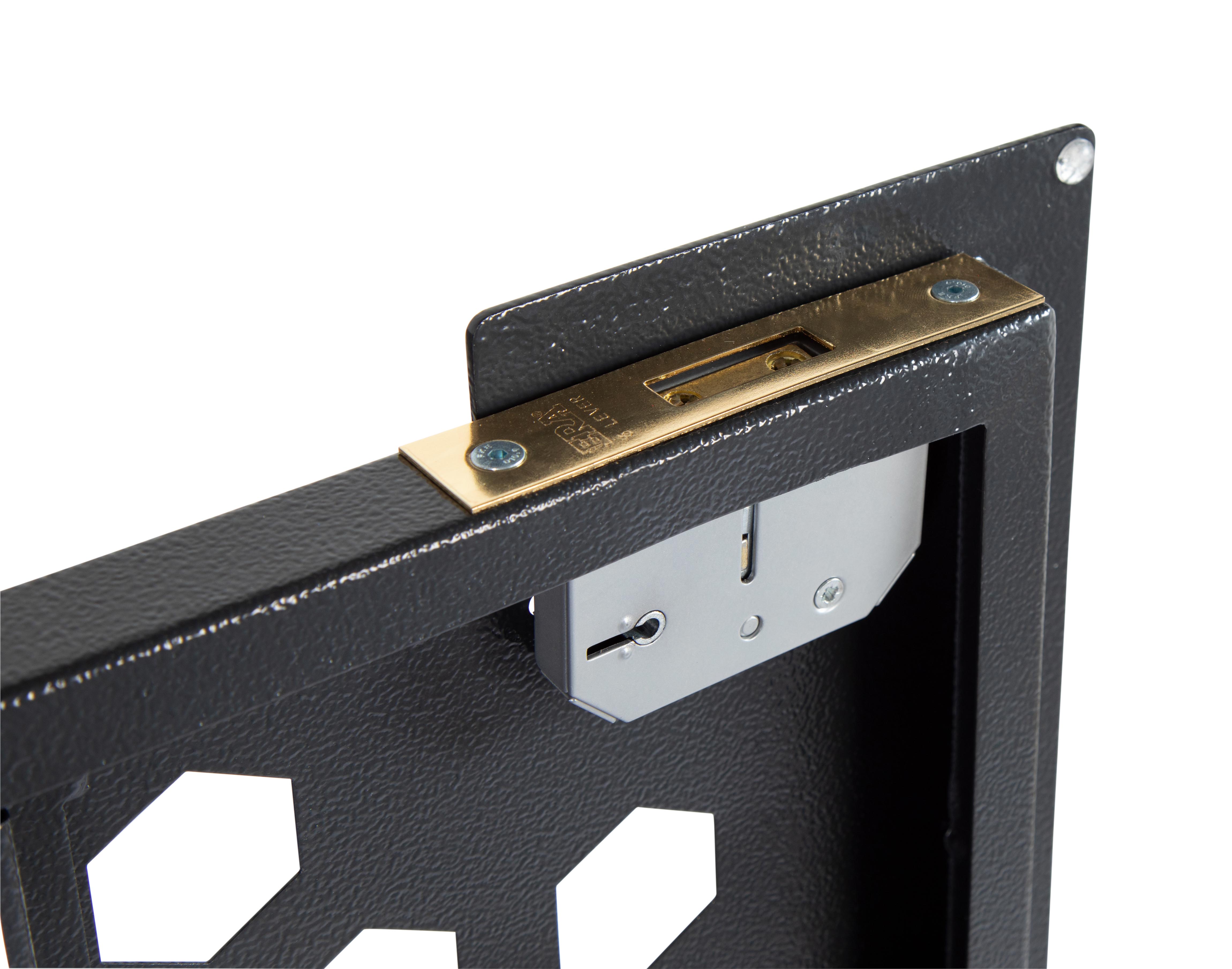 - 2 serrures à mortaise 5 leviers avec clés identiques, numéro d’identification de sécurité soudé et renfort de 6 mm