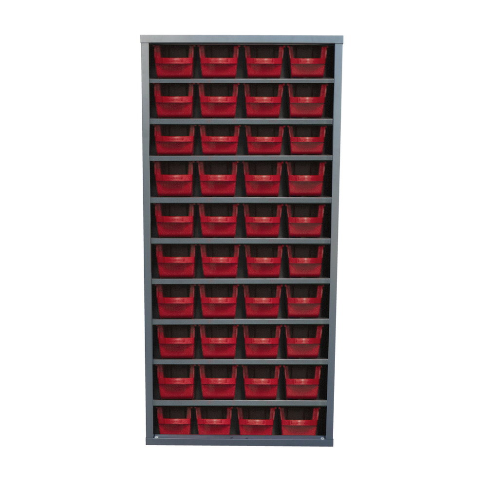 Armoire sans porte 9 tablettes 40 bacs 4L rouge VISO - ASP40PA03R