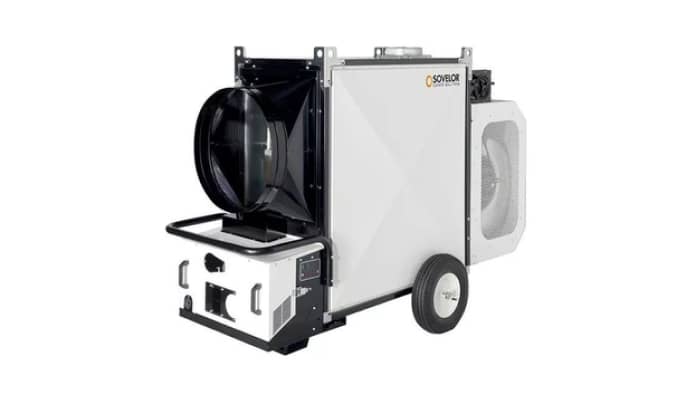 Les chauffages mobiles Sovelor HPV propulsent un air chaud pur grâce à leur chambre de combustion en acier inoxydable. La gamme propose des puissances de 21 à 110 kW, adaptées aux besoins des chantiers et ateliers. Un réservoir intégré avec jauge facilite le contrôle du niveau de carburant.