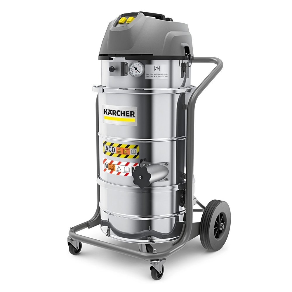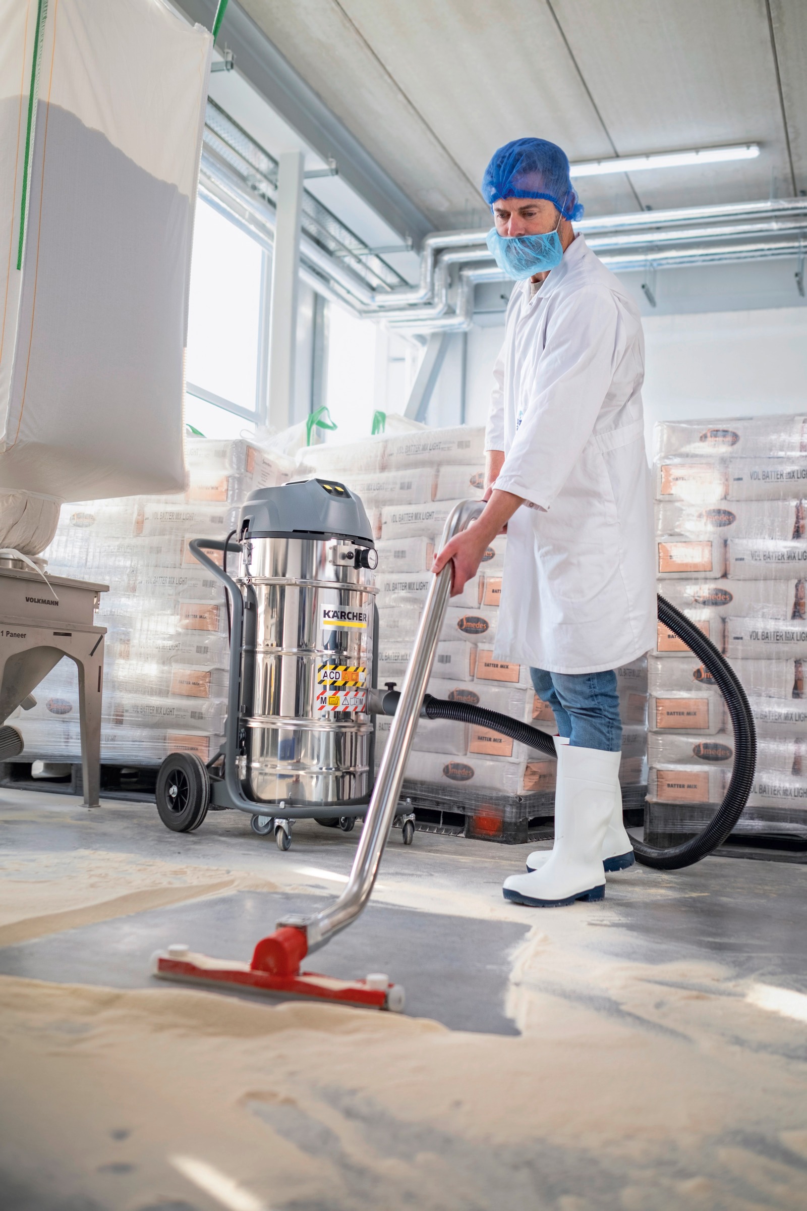 Durable, robuste, compact, mobile : notre aspirateur industriel IVM 40/24-2 M ACD de la gamme Medium est équipé de 2 moteurs, pour une aspiration universelle des matières solides inflammables fines et grossières, avec l'aspirateur placé hors zone ATEX. Cet appareil fiable fonctionne en 230 V monophasé et chacun des 2 moteurs peut être commandé individuellement. Le grand filtre en étoile en PTFE certifié pour les poussières de classe M se nettoie de manière facile, pratique et fiable grâce au système Pull and Clean qui permet un décolmatage du filtre sans avoir à éteindre l'aspirateur. Le logement du filtre et la cuve à déchets de l'aspirateur industriel sont en acier inoxydable résistant aux acides tandis que le châssis est fabriqué en acier robuste et dispose de grandes roues permettant des déplacements faciles.