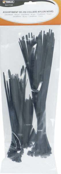 Découvrez Collier nylon assortiment noir - lot de 250 pcs SODELEC - 17183 disponible à l'achat