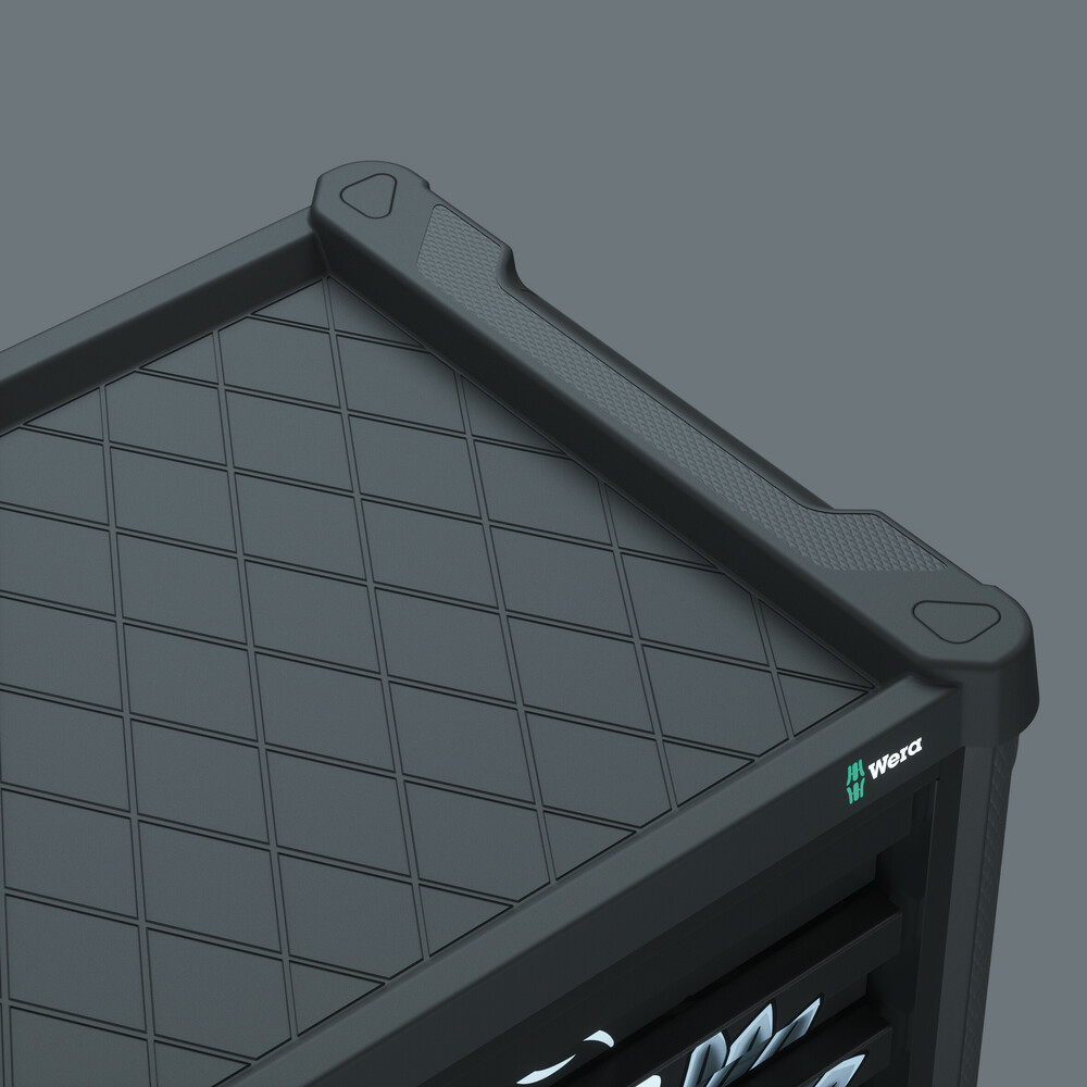 Pour le quotidien exigeant du travail en atelier. Équipée de 4 inserts en mousse Wera : 9710 insert en mousse pour jeu de tournevis 1, 9720 insert en mousse pour jeu de cliquets 8000 A Zyklop 1, 9731 insert en mousse pour jeu de clés mixtes 6003 Joker 1, 9740 insert en mousse pour jeu de clés coudées 1.