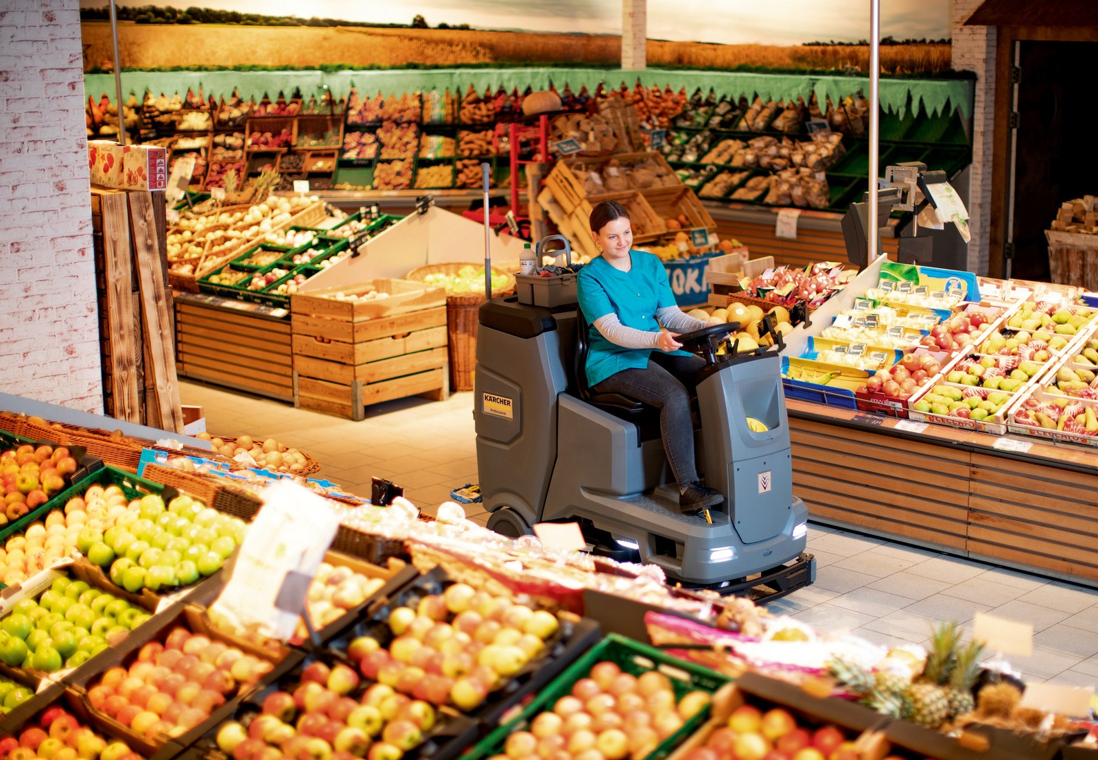 L'autolaveuse autoportée B 110 R avec brosses-disques se distingue par sa batterie lithium-fer-phosphate de 160 Ah, son chargeur intégré et son système de dosage intégré de détergent DOSE. Sa brosse de lavage latérale augmente le rendement.
