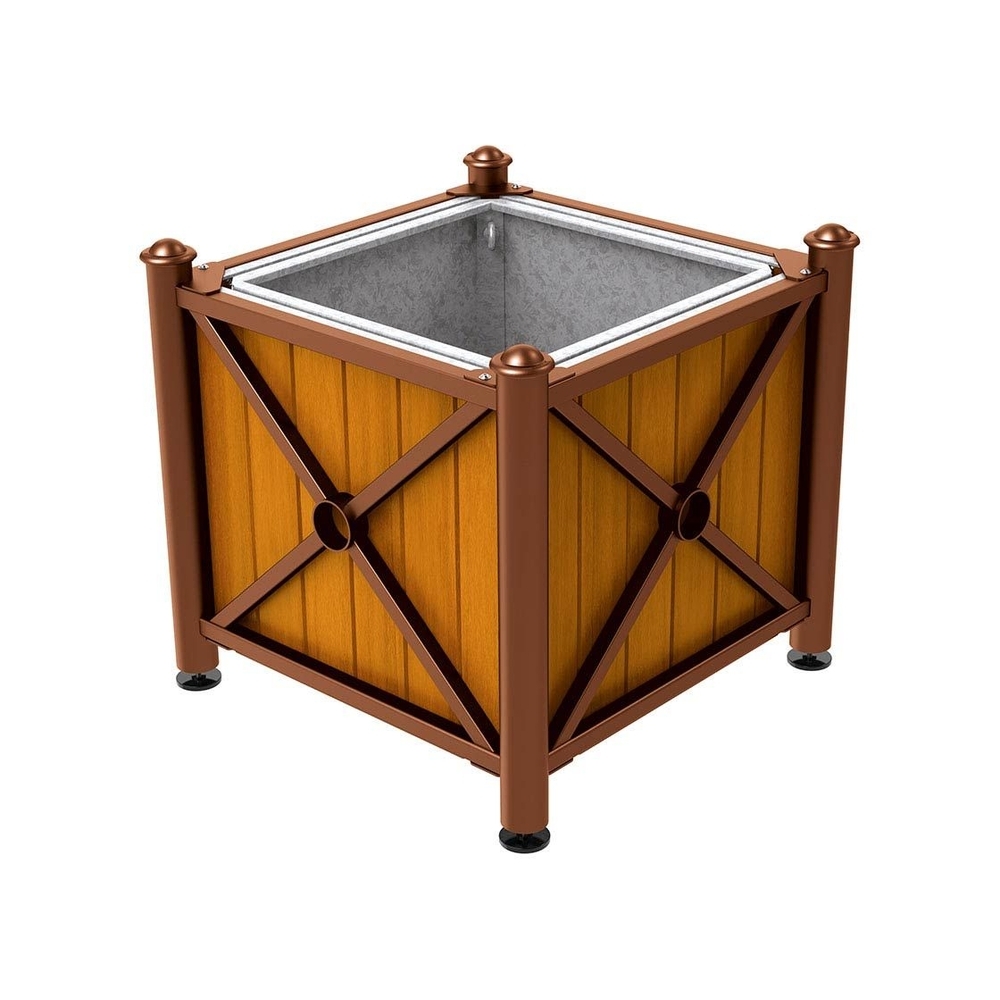 Découvrez Bac à palmier acier et bois Province Agora Aspect Corten - lasuré chêne clair - 800x800x750 - Bac acier amovible anneaux inclus - PROCITY - 201561.S025.CHEC disponible à l'achat