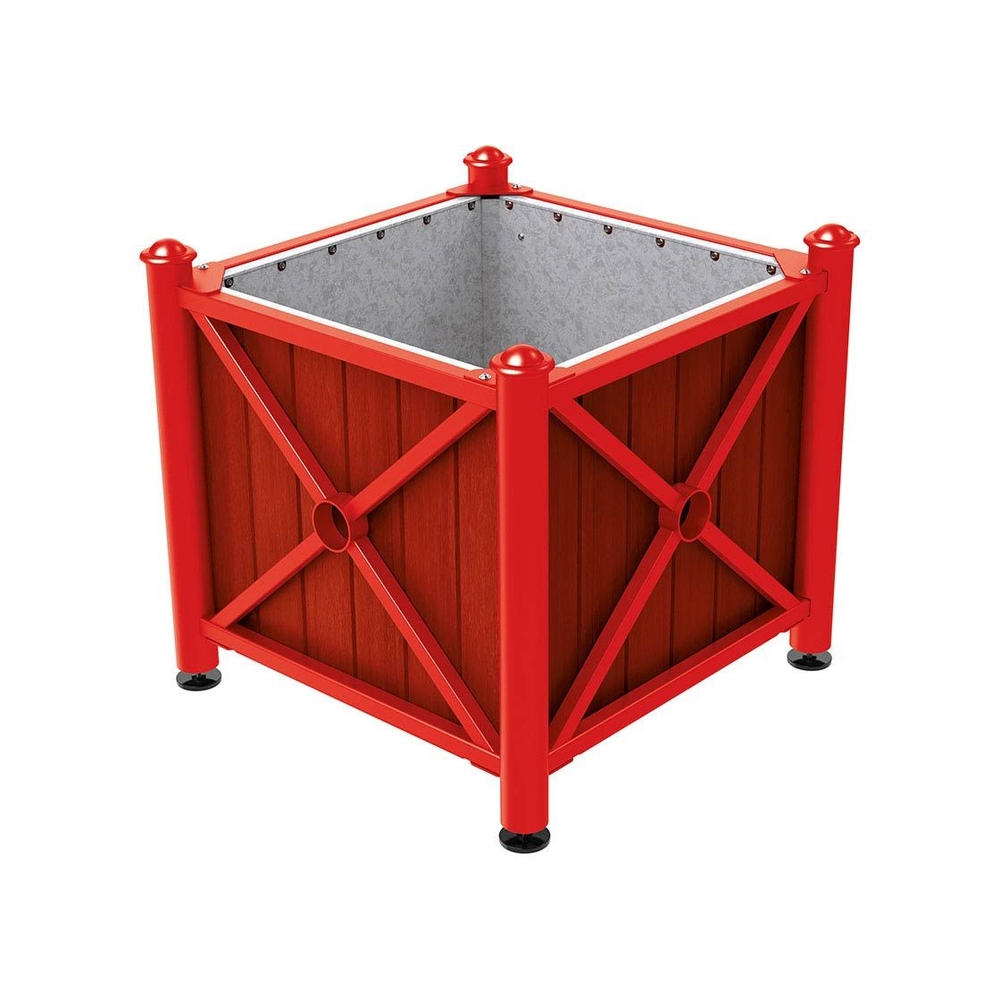Bac à palmier acier et bois Province Agora RAL3020 - lasuré acajou - 800x800x750 - Intérieur tôle galva - PROCITY - 201551.3020.ACAJ