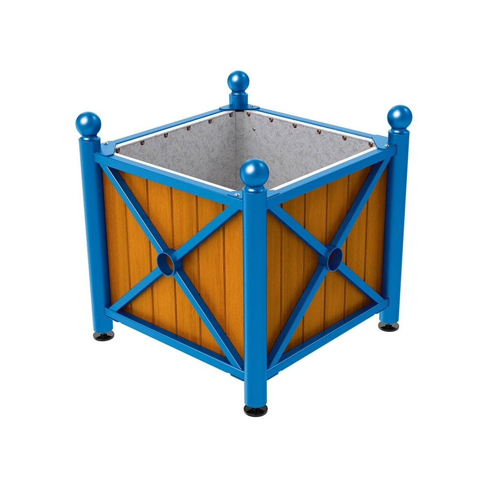 Bac à palmier acier et bois Province Boule RAL5010 - lasuré chêne clair - 800x800x750 - Intérieur tôle galva - PROCITY - 201552.5010.CHEC