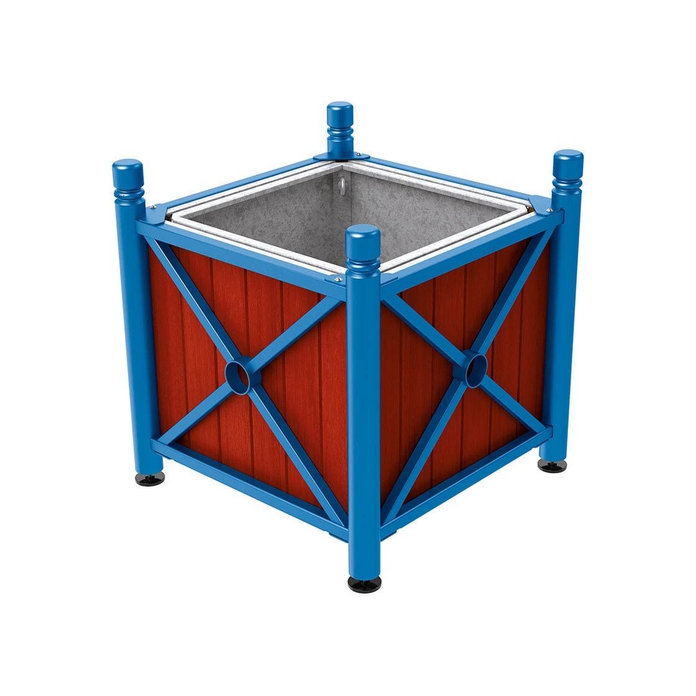 Bac à palmier acier et bois Province City RAL5010 - lasuré acajou - 800x800x750 - Bac acier amovible anneaux inclus - PROCITY - 201560.5010.ACAJ