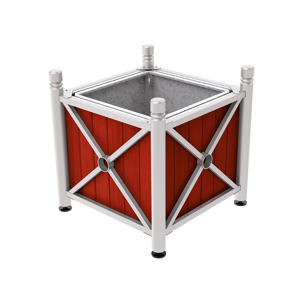 Dimensions : 800 x 800 x 750 mm. Constructé avec un châssis en tube d'acier galvanisé de ø 76 mm, il assure robustesse et durabilité. L'habillage est en bois exotique d'une épaisseur de 22 mm, disponible en finition brute, acajou ou chêne clair. Plusieurs options intérieures s'offrent à vous, avec la possibilité d'opter pour un bac acier amovible avec anneaux inclus, facilitant le drainage et l'entretien. Une réserve d’eau est également disponible, incluant géotextile, billes d'argile et tube de remplissage (à noter qu'elle est incompatible avec l'intérieur en tôle galvanisée).
