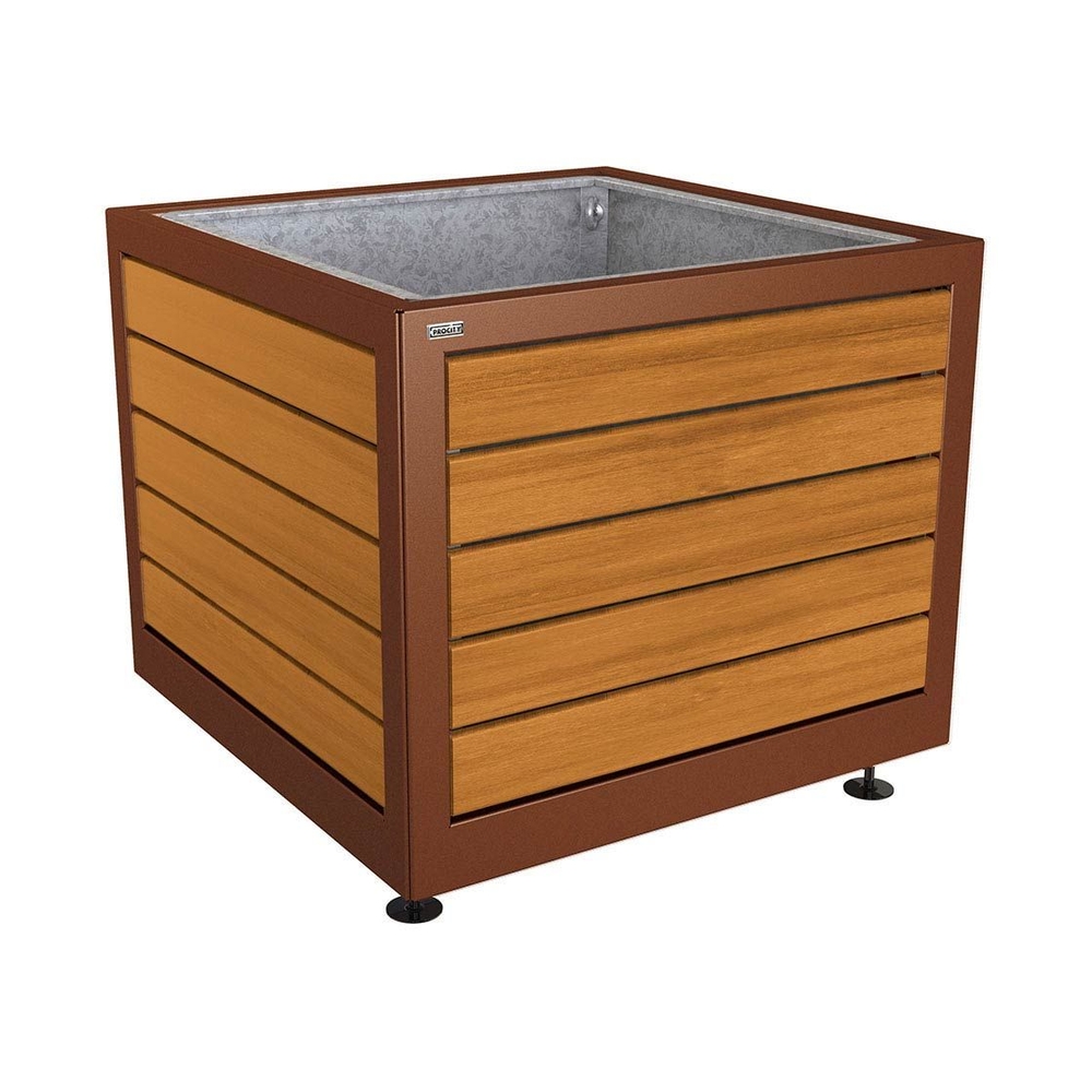Découvrez Bac à palmier Silaos acier et bois Aspect Corten - Chêne lasuré chêne clair - 1000x1000x800 - Bac acier amovible anneaux inclus - PROCITY - 201733.S025.CHEC disponible à l'achat
