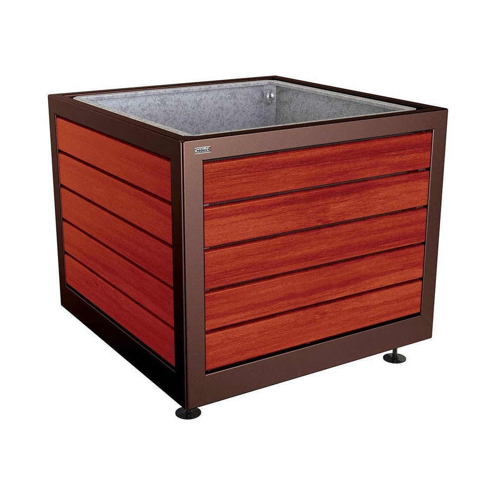 Bac à palmier Silaos acier et bois RAL8017 - Chêne lasuré acajou - 1000x1000x800 - Bac acier amovible anneaux inclus - PROCITY - 201733.8017.ACAJ