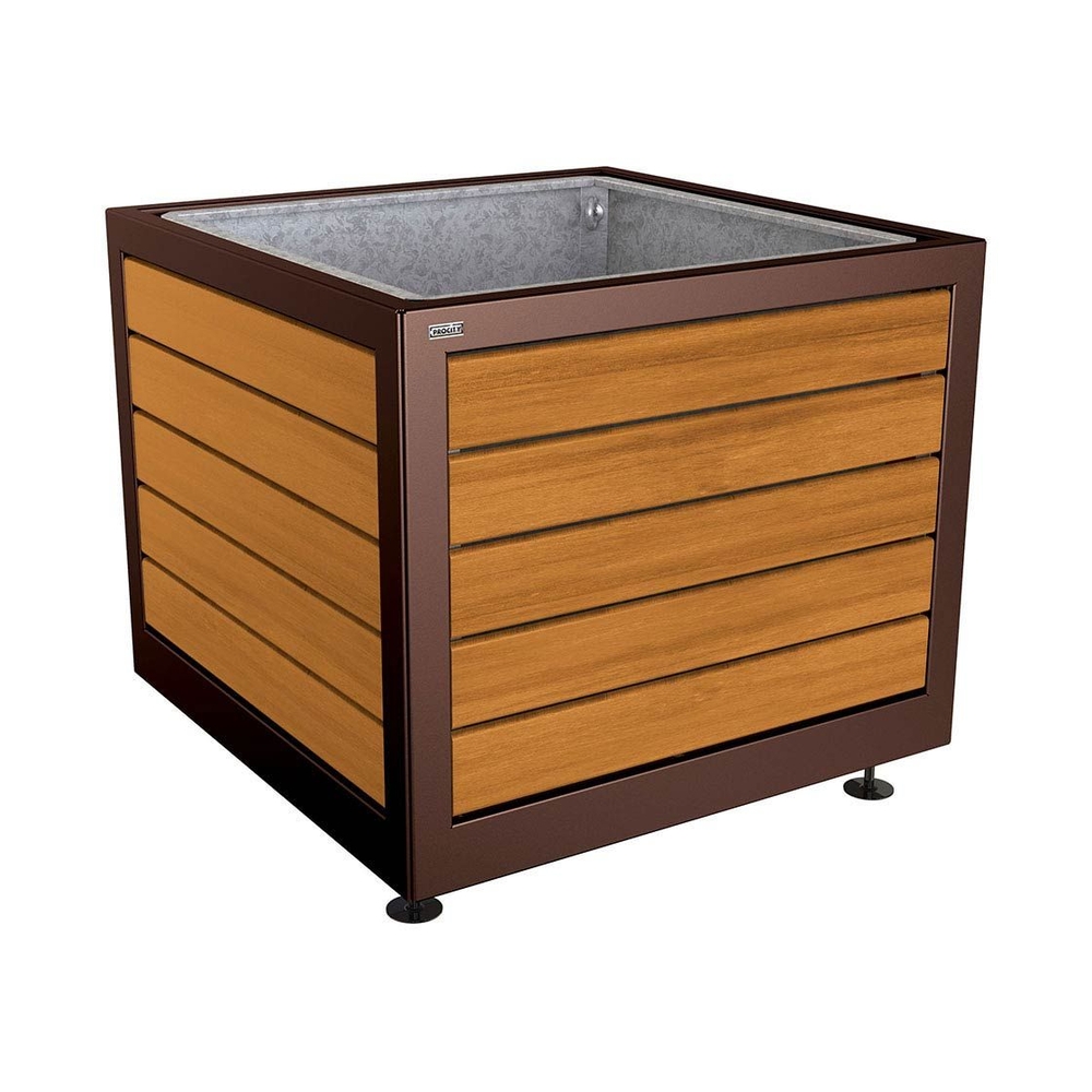 Bac à palmier Silaos acier et bois RAL8017 - Chêne lasuré chêne clair - 1000x1000x800 - Bac acier amovible anneaux inclus - PROCITY - 201733.8017.CHEC