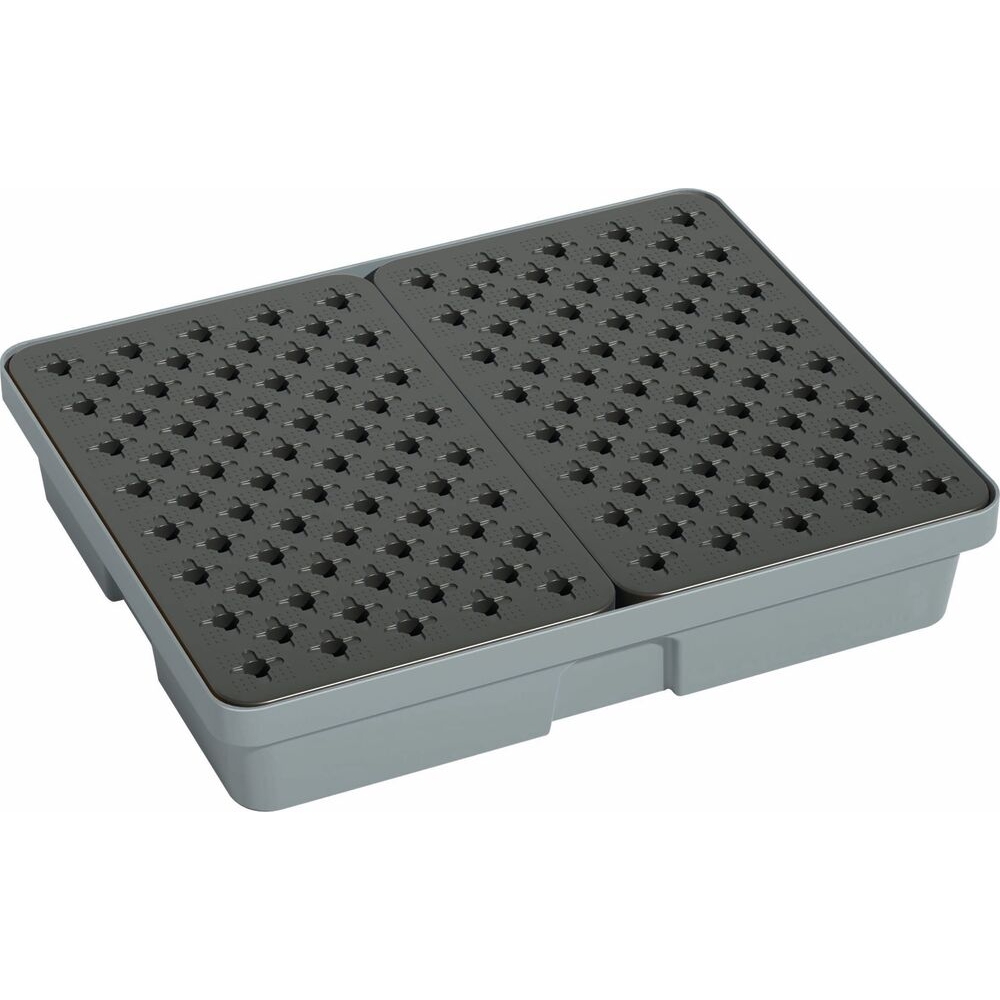 Le plateau est fabriqué en PEHD (polyéthylène haute densité) à 100% et est équipé d’un caillebotis amovible en polypropylène (PP) avec une surface anti-dérapante, garantissant une bonne stabilité des contenants.