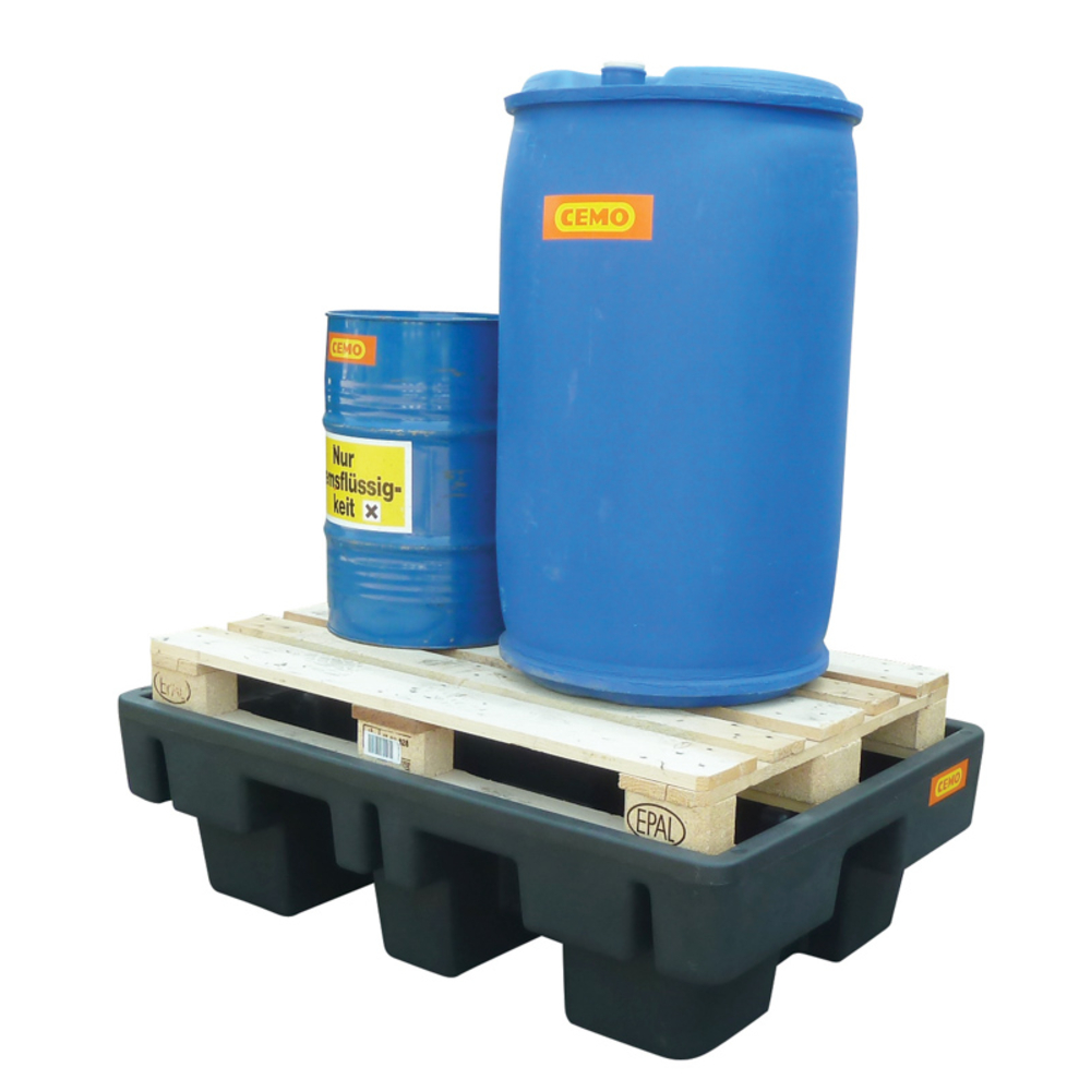- Conçu pour le stockage de fûts et bidons sur palette Europe.