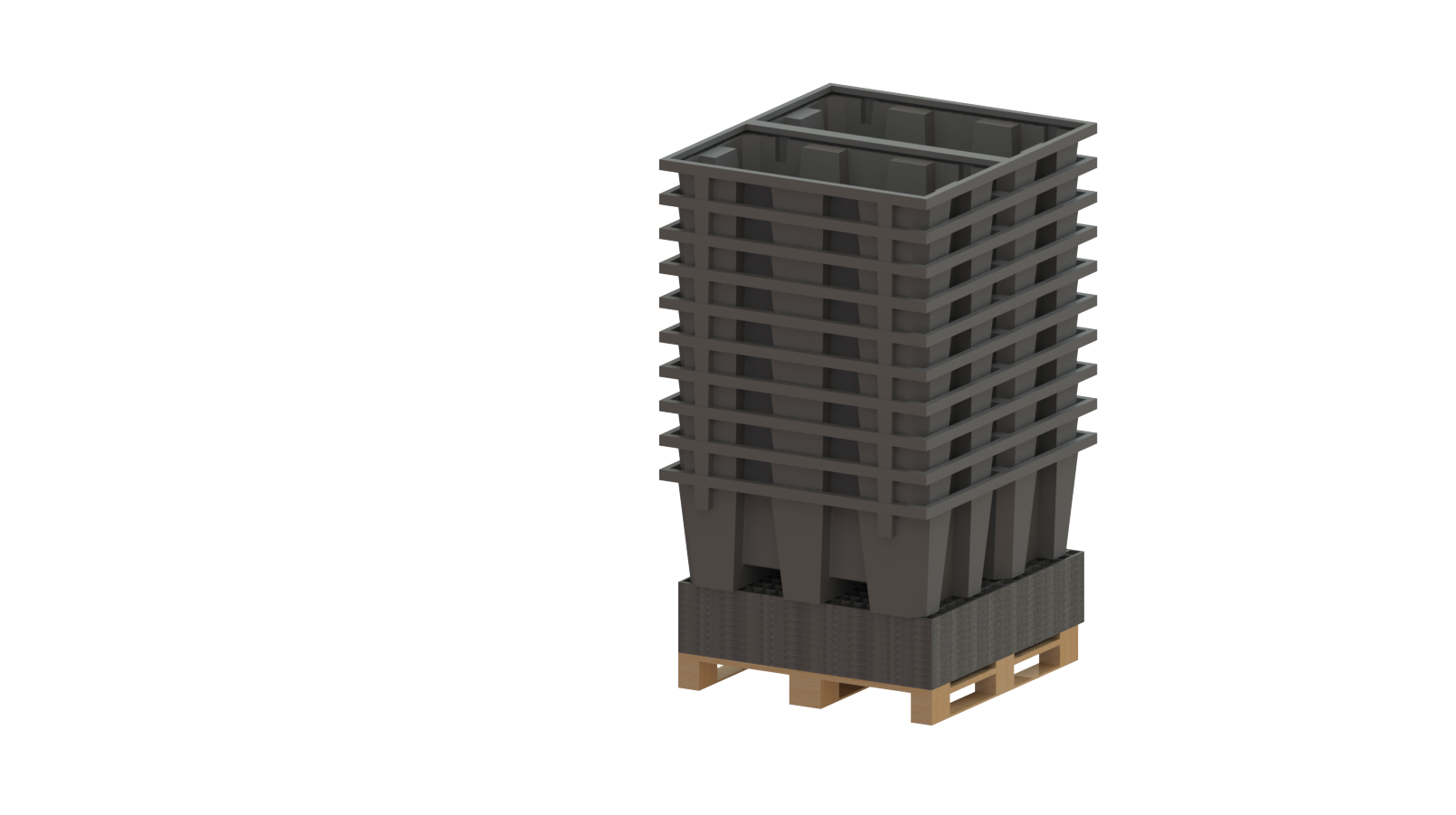 Empilable 10 bacs maxi dimensions 1300x1300x2450 mm