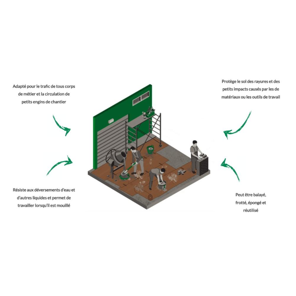 Protecteur de sol en carton compacté à très haute résistance, respirante et à très faible perméabilité