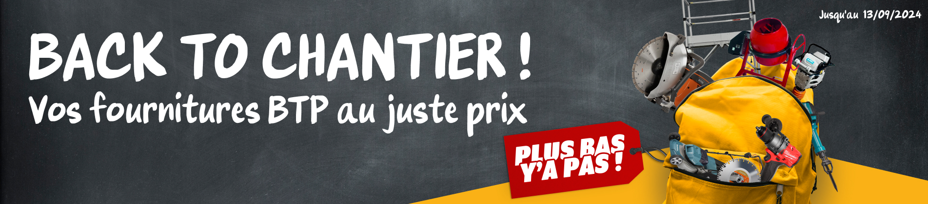 Découvrez notre sélection spéciale "Back to Chantier" avec des offres imbattables sur vos fournitures professionnelles.