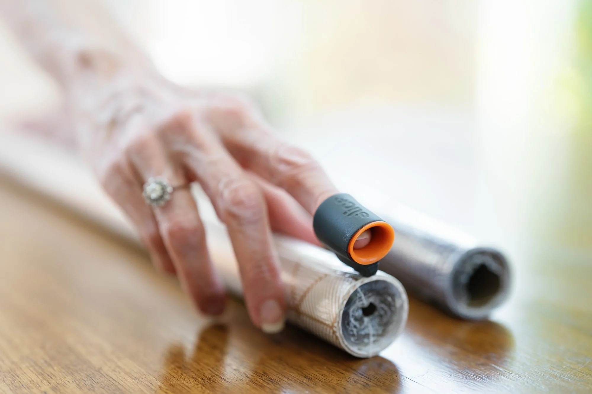 Équipée d’une bague d'adaptation amovible en silicone, cette bague coupante de sécurité s'adapte à la plupart des tailles de main. Sa micro-lame en céramique offre une puissance de coupe précise et continue qui se déplace en même temps que votre main, pour un meilleur contrôle et un meilleur confort.