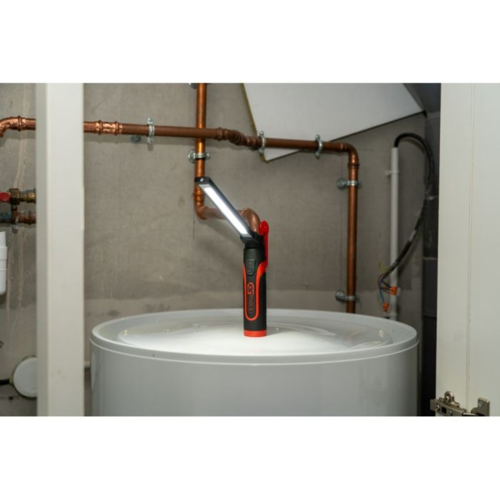 Cette baladeuse est conçue pour une utilisation polyvalente grâce à sa base et son dos magnétiques, permettant de la fixer facilement sur toutes surfaces métalliques pour un éclairage mains libres. Elle est également orientable à 180° (2 x 90°) et dispose d’un crochet inférieur déployable et pivotable à 360°, offrant un positionnement optimal selon vos besoins et permettant de suspendre l’éclairage dans des espaces difficiles d’accès.