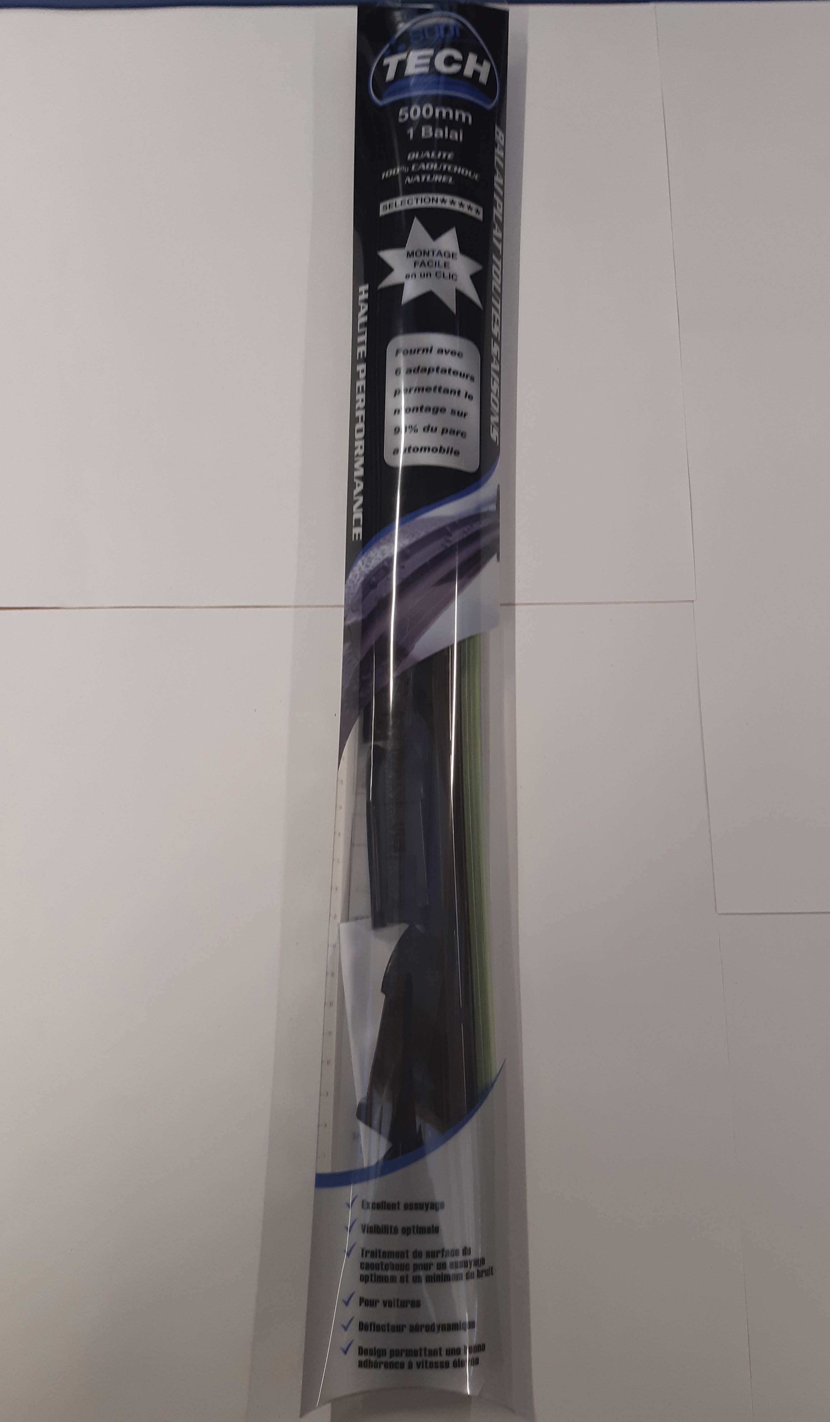 Le montage de ce balai s'effectue en un clic, rendant son installation simple et rapide, même pour les utilisateurs moins expérimentés. De plus, il est doté d'un déflecteur aérodynamique qui optimise sa performance à grande vitesse. Équipé de 6 adaptateurs, ce balai s'adapte à 98% du parc automobile, offrant une polyvalence inégalée.