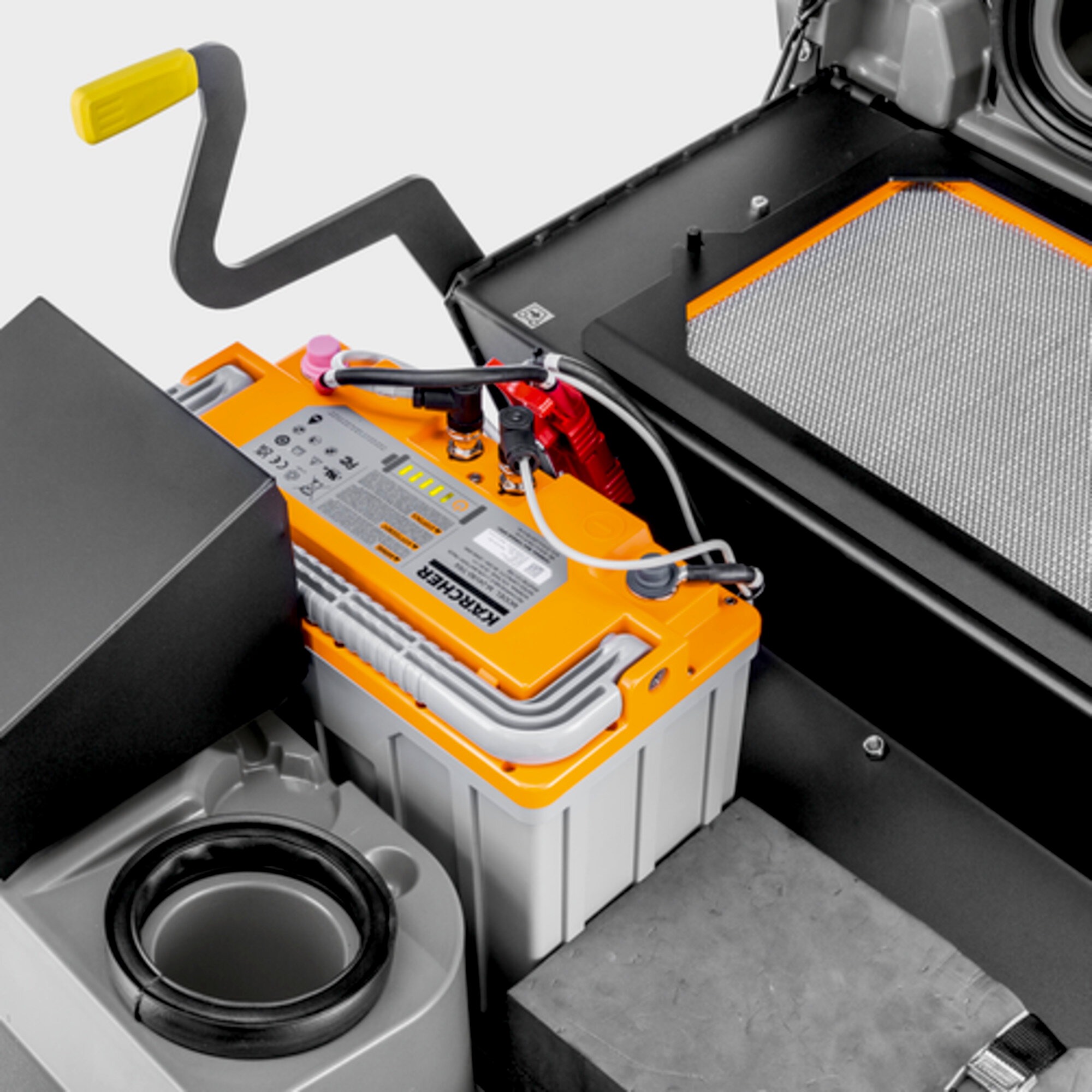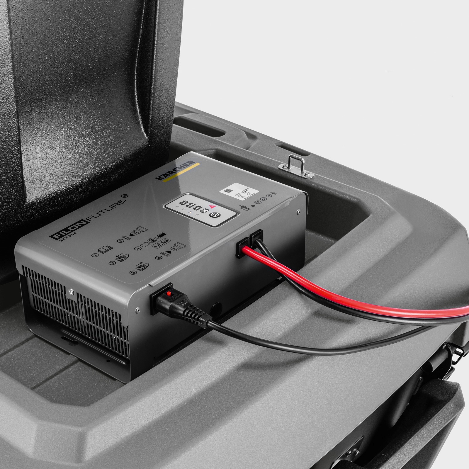 Avec sa batterie Li-Ion et son chargeur rapide, la balayeuse autoportée KM 85/50 R est une machine à la fois maniable, facile d'utilisation et performante grâce à son rendement surfacique élevé.