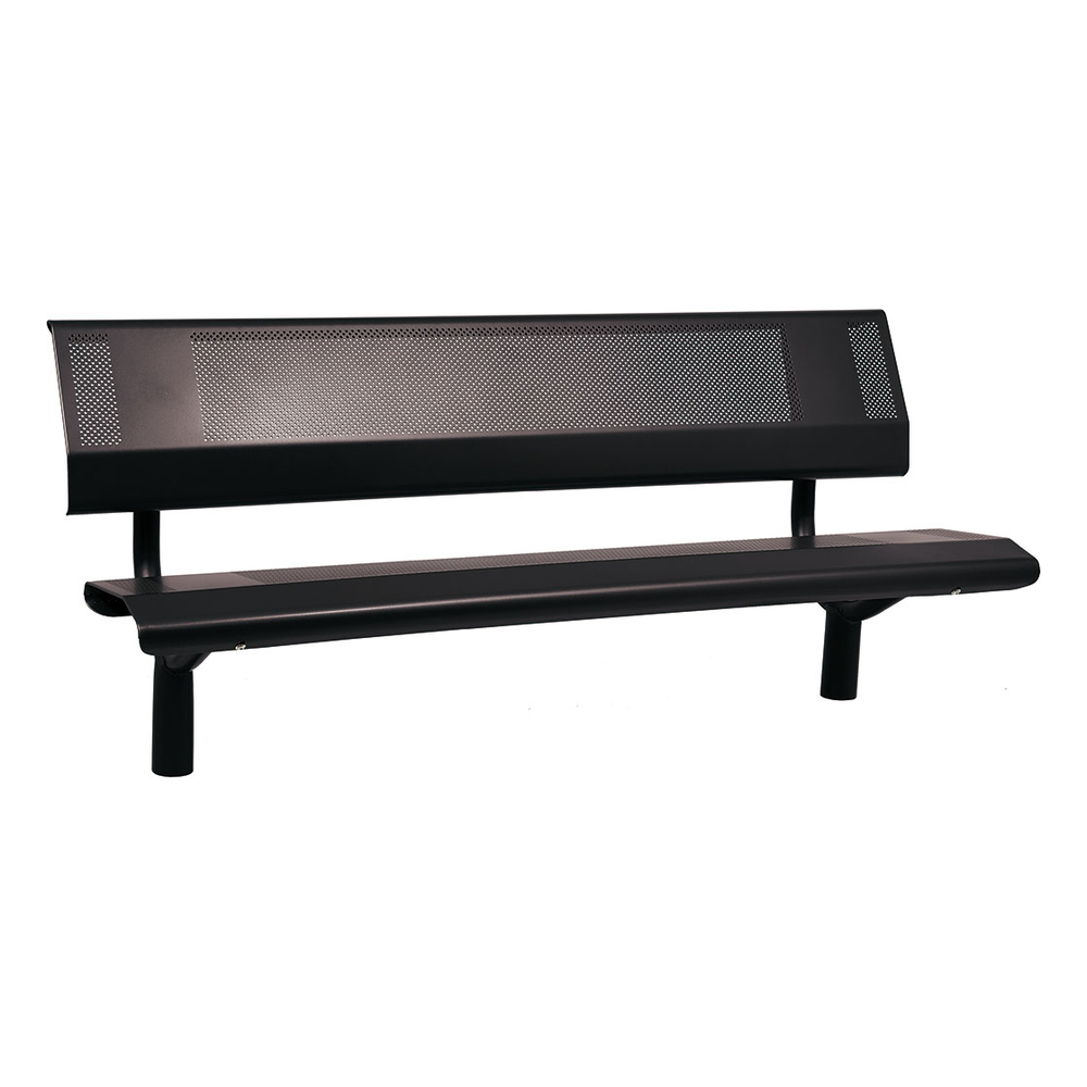 Sa structure en tube d’acier de 76 mm assure robustesse et durabilité, tandis que l’assise et le dossier sont réalisés en tôle acier perforée de 2,5 mm, bénéficiant de plis écrasés et d'angles arrondis pour une sécurité maximale. Pour une finition esthétique et résistante, le banc est peint sur zinc selon une large gamme de coloris.