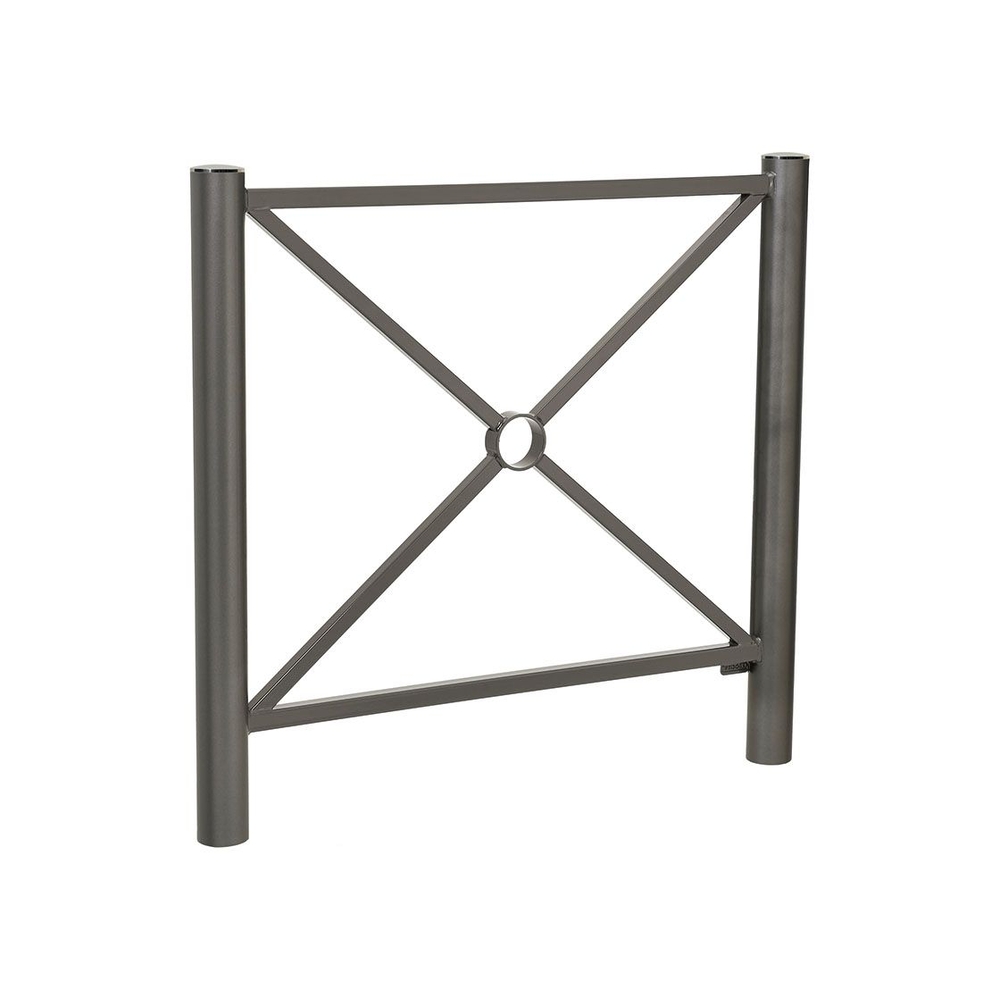 Ce type de barrière "Croix de St André" est disponible en options variées : cadre simple croix, rosace ou grillagé. Pour son installation, la barrière se fixe par scellement direct, avec la possibilité d’opter pour des platines amovibles via le kit Serrubloc, facilitant ainsi son retrait si nécessaire.
