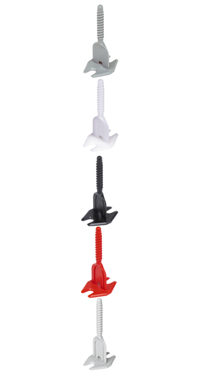 La gamme de brides CYCLONE LEVEL SYSTEM a différentes épaisseurs et comprend des bases en croix et en T pour remplacer * les croisillons de carrelage traditionnels. Chaque épaisseur de bride est facilement identifiable grâce à un code couleurs qui les différencient.