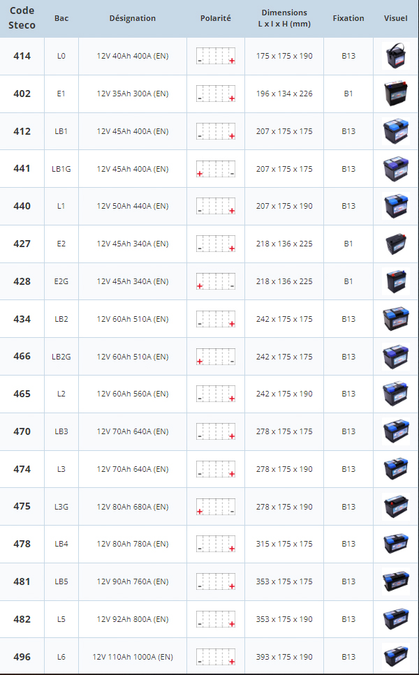Il est recommandé de remonter sur le véhicule une batterie de capacité supérieure à celle d’origine :