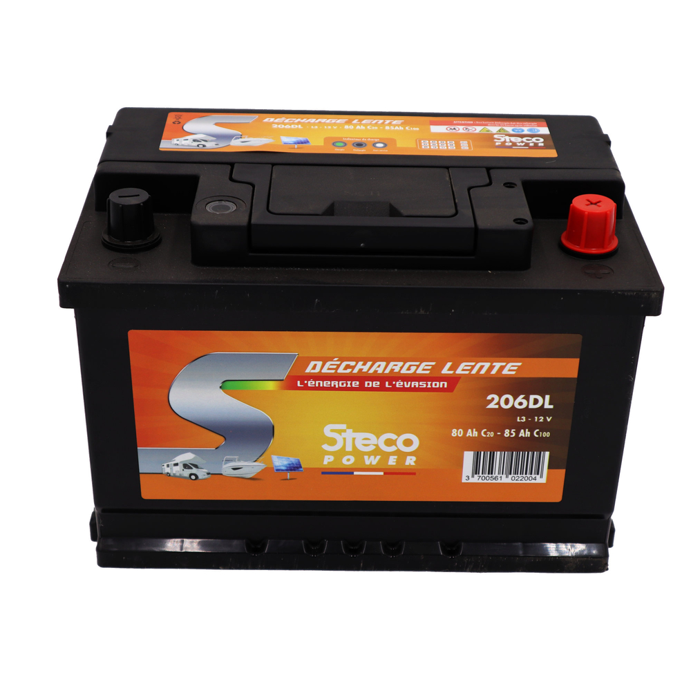 Batterie 12V 80 Ah (20h) - 85 Ah (100h) 277x175x190 mm Décharge Lente STECOPOWER - 206DL