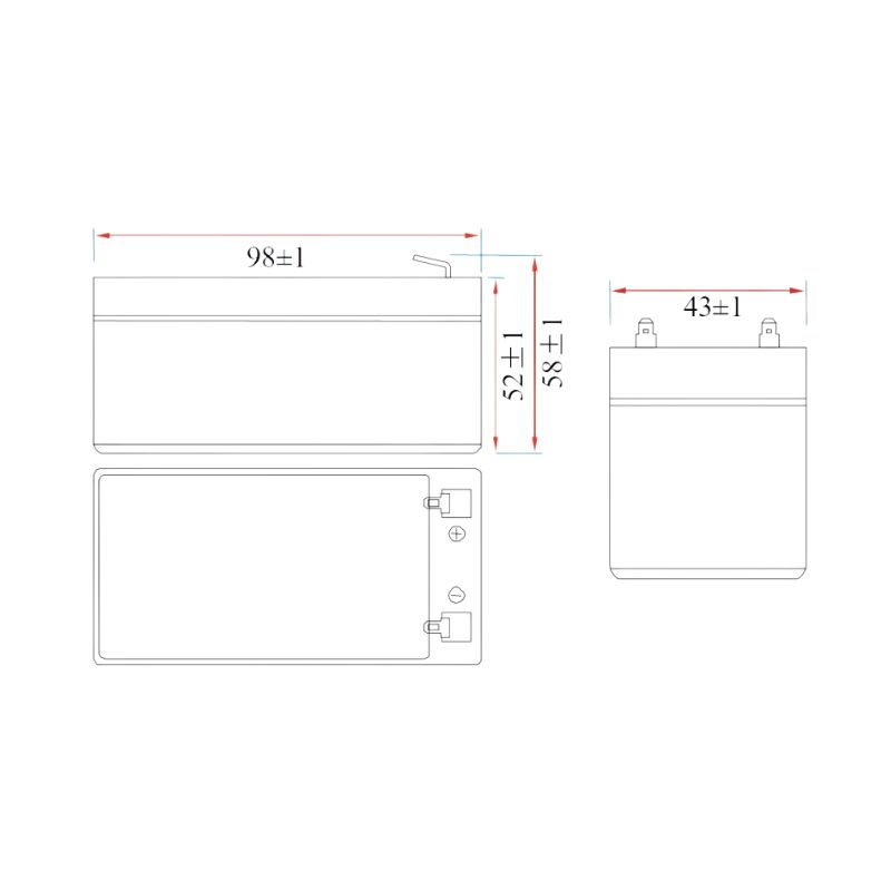 Cette batterie se distingue par ses dimensions compactes de 98 x 58 x 44 mm (longueur x hauteur x profondeur) et un poids léger de 0,5 kg, facilitant son intégration dans différents dispositifs électroniques et systèmes de sécurité. Elle est équipée de connecteurs Faston F1, permettant une installation rapide et sécurisée sans outil complexe.