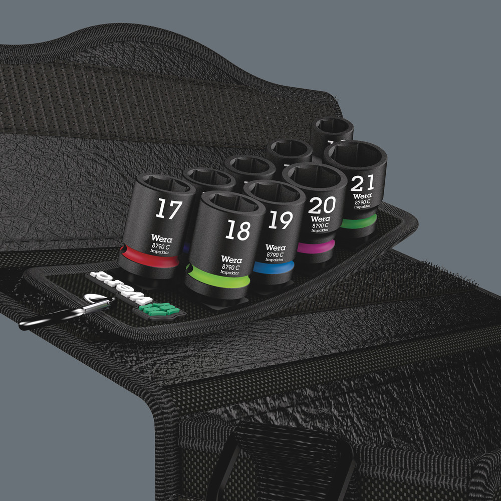 Sangle textile (Belt) au design Wera avec 9 douilles Impaktor dans un volume restreint