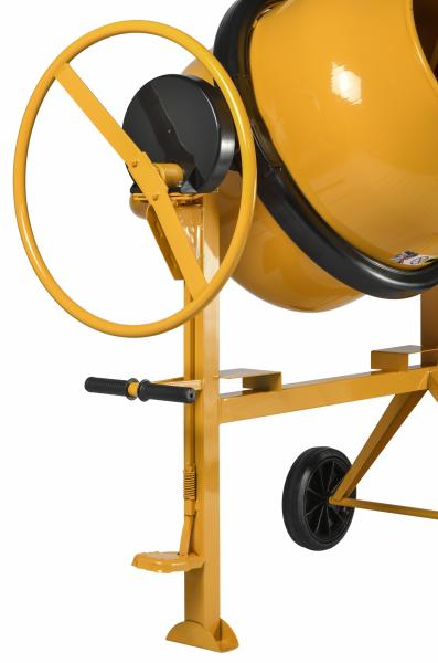 Puissance 0,95 kw Déversement de la cuve : volant grand diamètre Couronne : fonte Protection couronne : matière composite Puissance acoustique (LWA) : 94 dB Capot moteur : Tôle en acier Courroie : Poly V Roues : Pleines caoutchouc Ø 250 mm Dimensions (L x l x h) : 1320 x 750 x 1370 m Poids : 67 kg