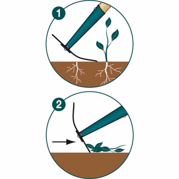 ° Outil 2 en 1 pour le désherbage dans les terres dures, les allées en stabilités (gore), les chemins, les allées et les sols plans.