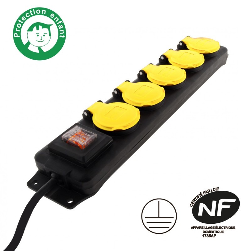 Bloc multiprises 5 prises avec interrupteur et cordon 1,5 m H05RR-F 3G1,5 mm² - VELAMP - ST305-FR