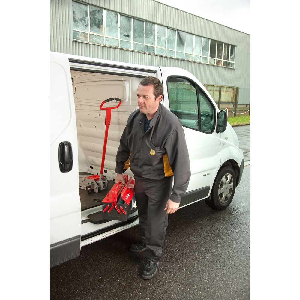 Cette boîte à outils est conçue pour offrir un accès immédiat à vos outils grâce à un écartement optimal des poignées. Dotez-vous d'une organisation efficace avec ses trois compartiments où le fonds est recouvert de mousse pour protéger vos outils. Pour plus de sécurité, elle peut être verrouillée à l'aide d'un cadenas (non fourni).