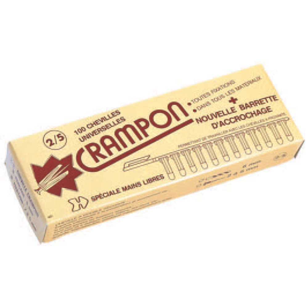 Boîte carton de 100 chevilles Crampon 2/5 avec collerette : Ø 6 mm